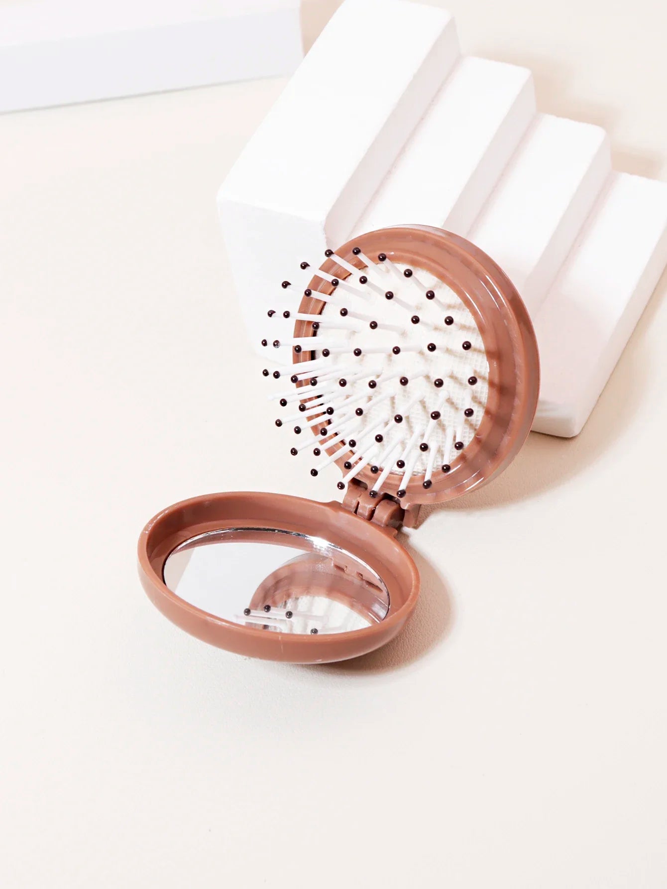 Questa spazzola con specchietto integrato è pensata per i ritocchi al volo: districa delicatamente anche le parrucche e i capelli veri, grazie ai dentini anti-statici ad anello.