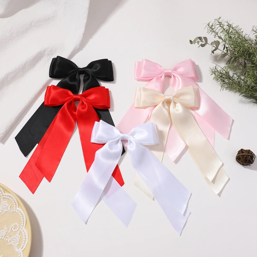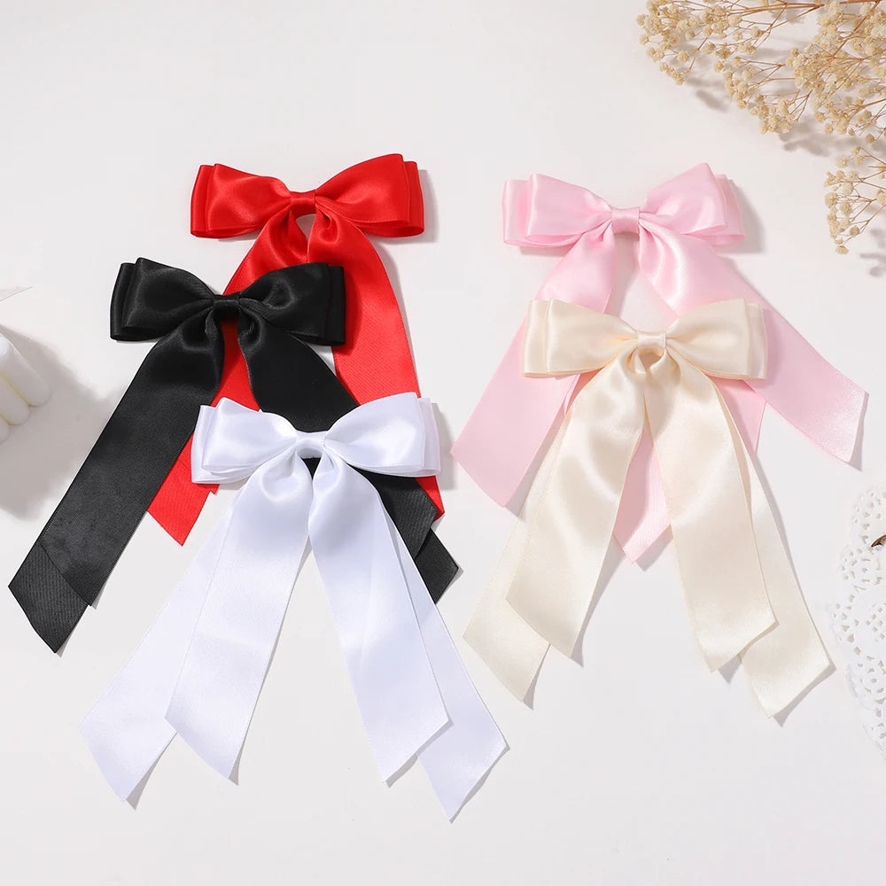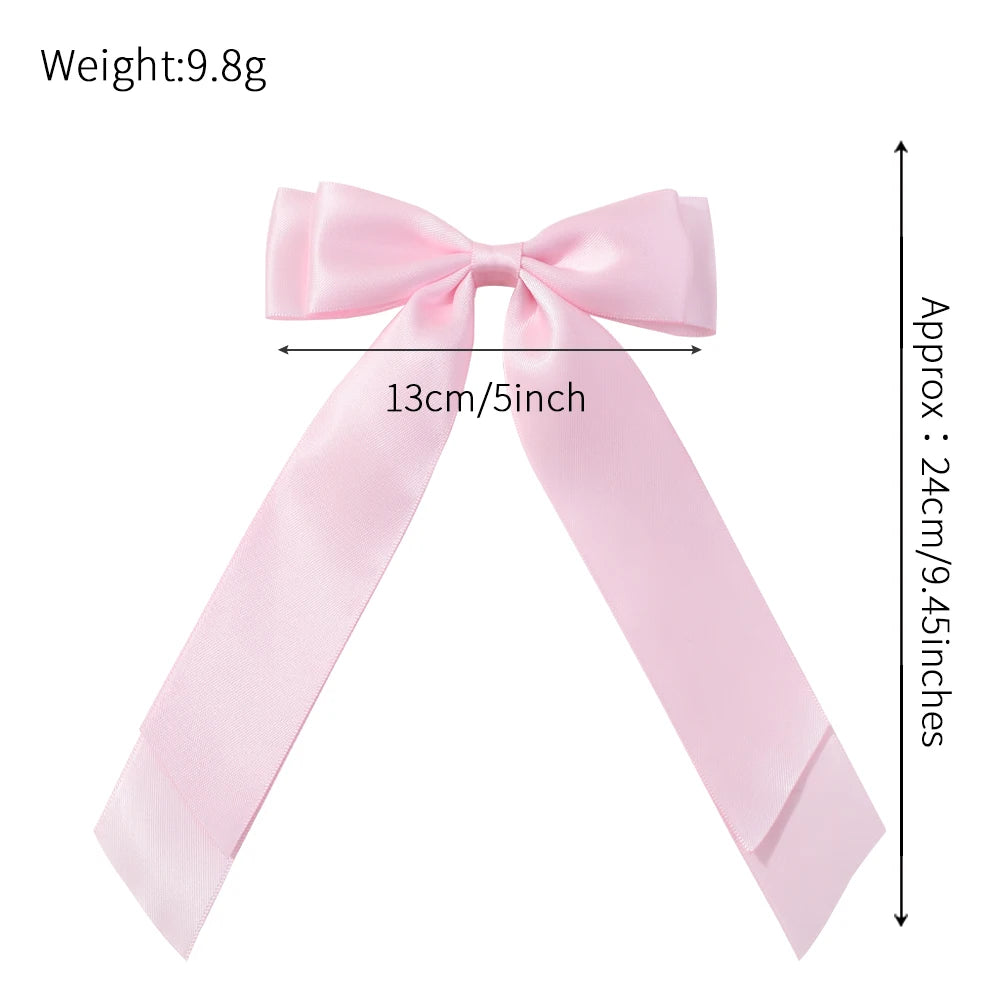 Un tocco dolce, elegante e super Y2K! Questi fiocchi lunghi con nastro in raso sono perfetti per chi ama uno stile romantico ma moderno. Il set include 5 clip fiocco ideali per arricchire trecce, code alte o lasciarli semplicemente cadere sui capelli sciolti.