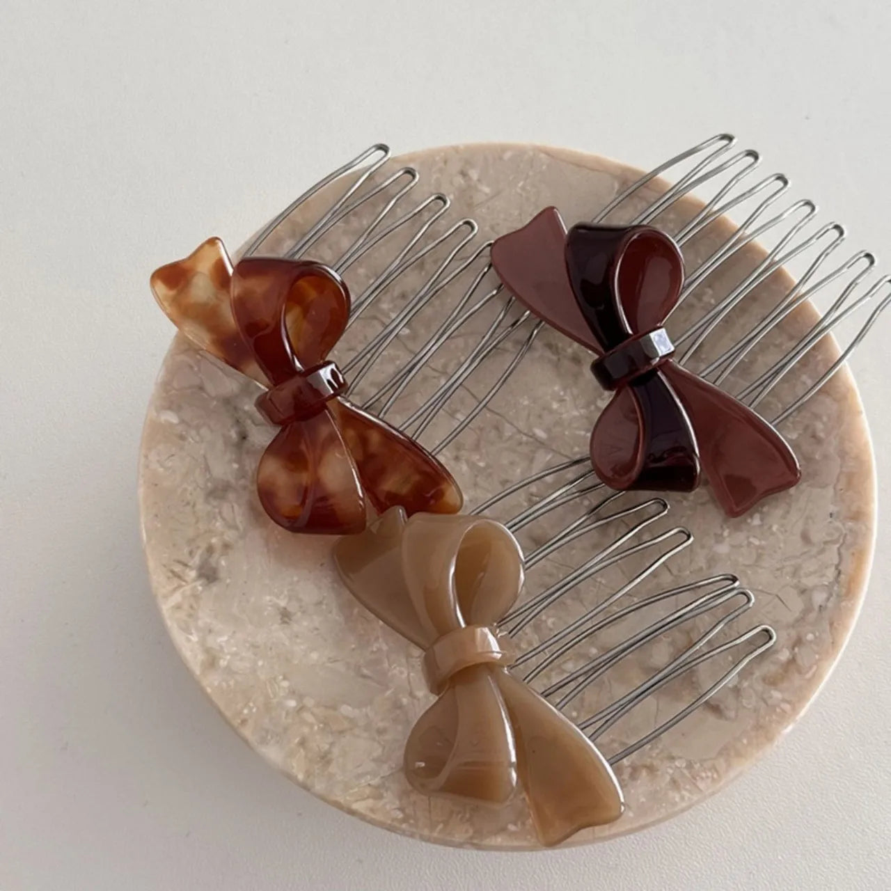 Questi fermacapelli a pettinino con fiocco in acetato sono l’accessorio perfetto per impreziosire ogni acconciatura con stile.