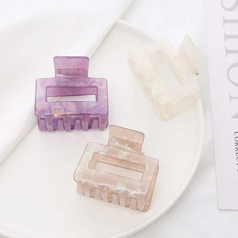 Dai un tocco chic e moderno alle tue acconciature con queste mollette medie in acetato. Il design geometrico e traforato le rende leggere, sofisticate e perfette per raccogliere i capelli con stile.