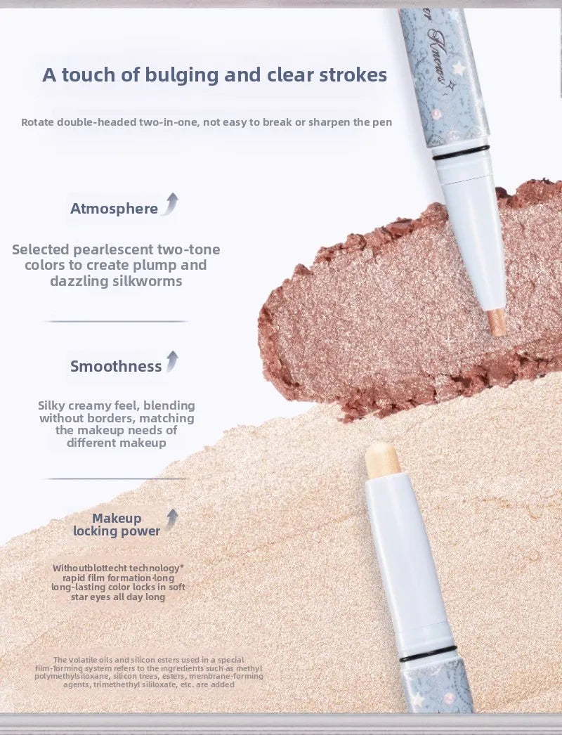 Matita doppia estremità effetto perla, ideale per illuminare e definire il contorno occhi e creare il “lying silkworm” look. Colore scorrevole, lunga durata e resistente all’acqua per un trucco impeccabile tutto il giorno.