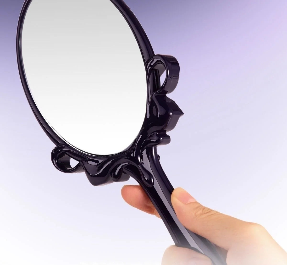 Specchio da trucco con manico, dal design elegante, perfetto per ritocchi rapidi o per il tuo angolo beauty.