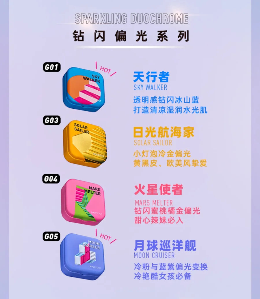 Palette illuminante multiuso con polveri glitter e cromate per un effetto chameleon e diamantato che esalta ogni look con brillantezza cosmica.