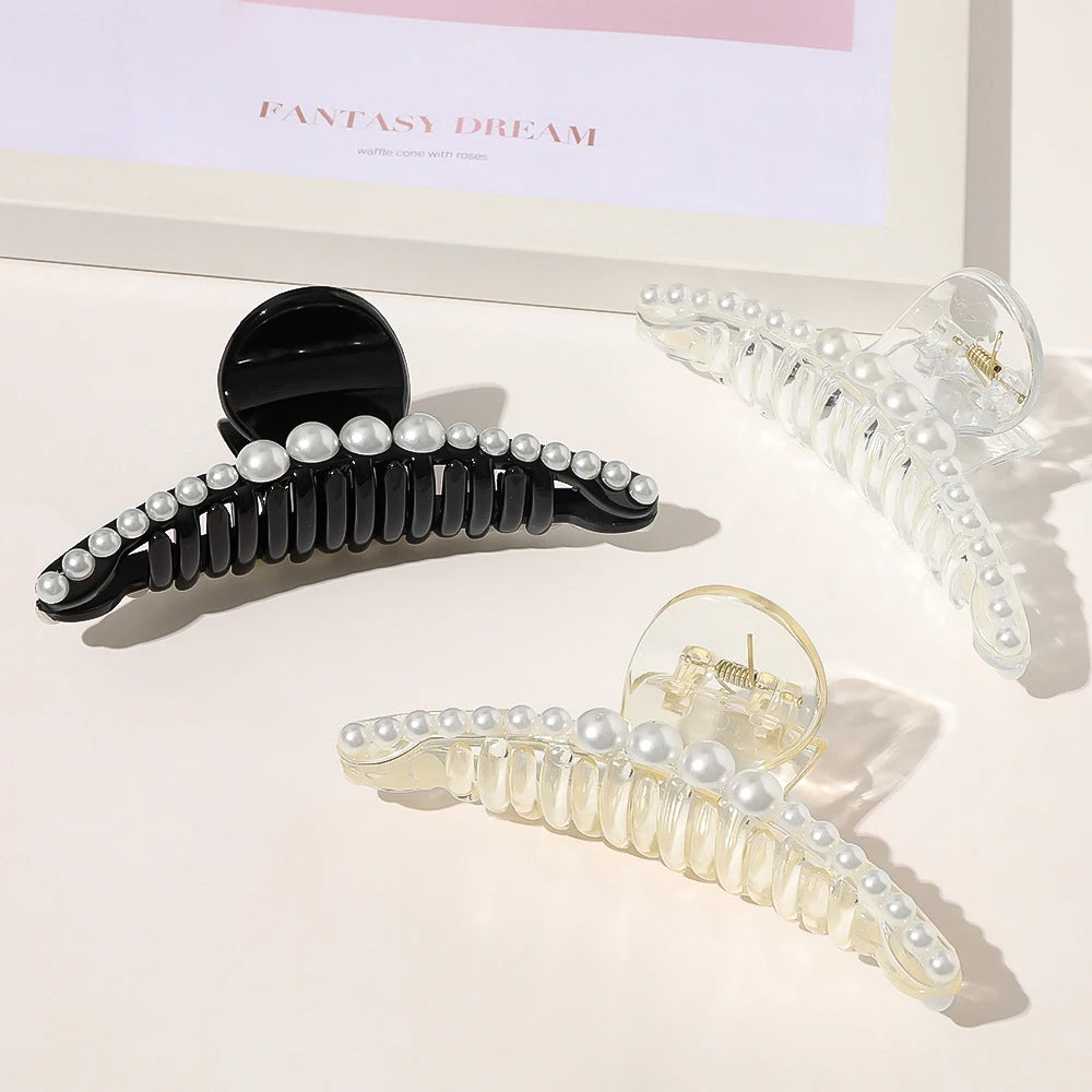 Un tocco di eleganza istantaneo per ogni acconciatura! Questa molletta in plastica trasparente con perle effetto luxury è l’accessorio perfetto per raccogliere i capelli con stile. Il design è ampio e stabile, adatto sia per capelli sottili che spessi.